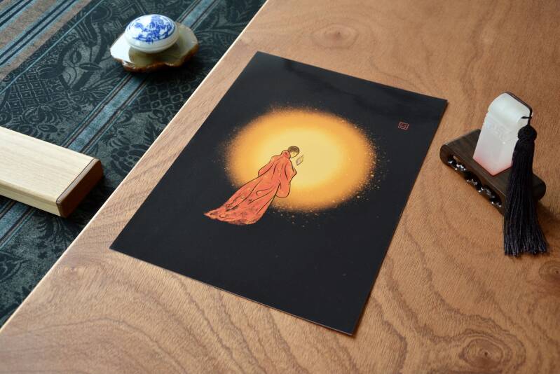 Shows a human getting into contact with the flame and light inside her- or himself. A beautiful gift for someone who is into meditation, feels connected to Zen Buddhism, Tibetan monks and is on an inner journey of self discovery. Or a gift for yourself, to remind you of your inner flame, your presence, and that the light of truth lies inside of you. A reminder on the wall for you or a loved one, to remind ourselves to go inside for answers.